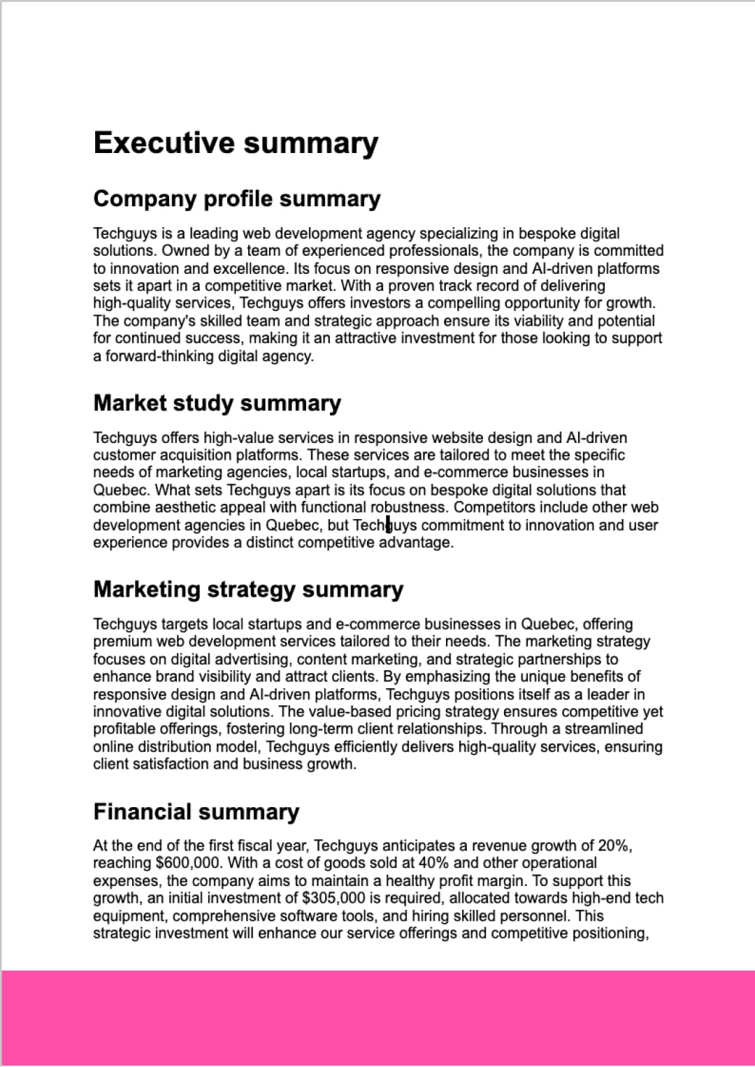 Great product with strong potential. Innovative and developed by a talented Quebec team. Perfect if you're looking to develop a plan for your business at an affordable price and in record time.